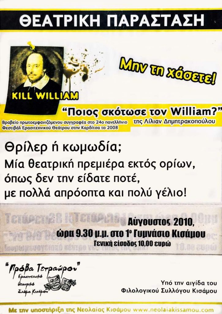 1) «Ποιος σκότωσε τον Γουίλιαμ;» (της Λίλιαν Δημητρακοπούλου, Ιούλιος – Αύγουστος