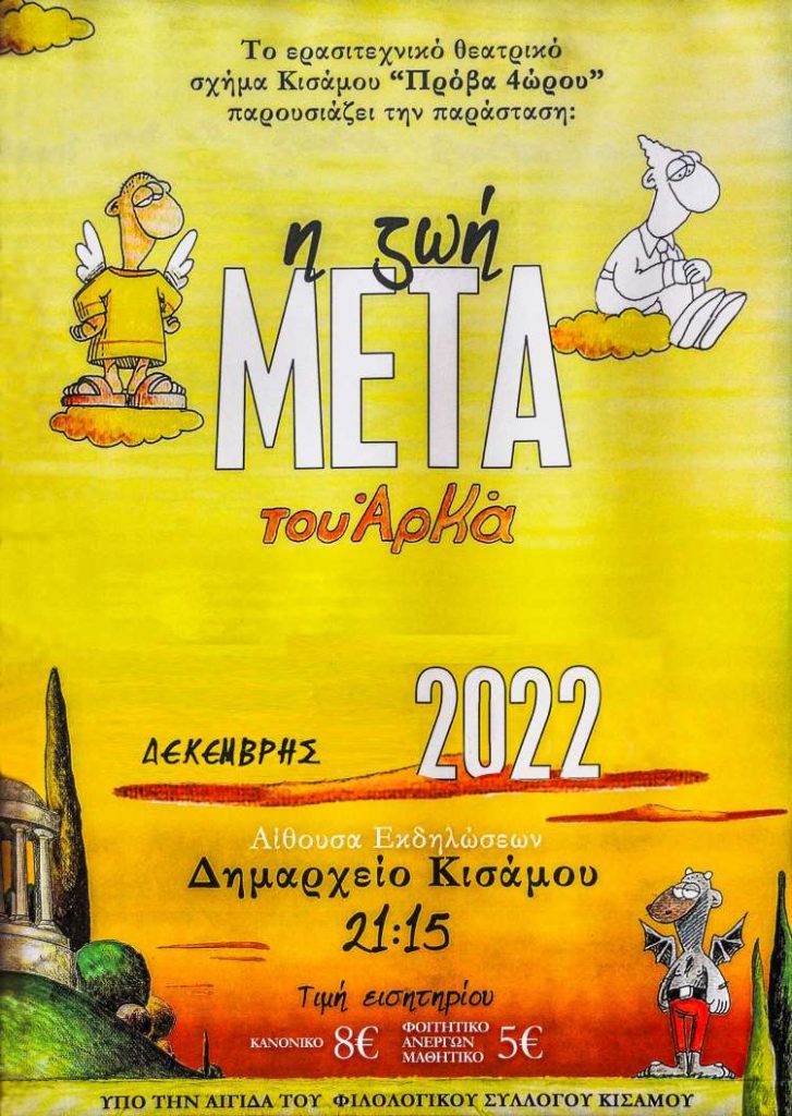 Το ερασιτεχνικό θεατρικό σχήμα Κισάμου «Πρόβα 4ώρου» που τελεί υπό την αιγίδα του